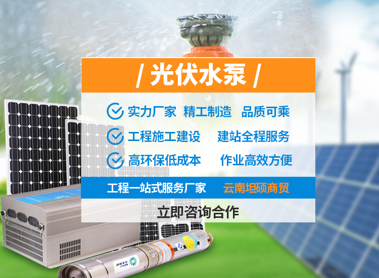 云南坦碩商貿有限公司是一家致力于光伏新能源發電系統的研發、設計、生產、銷售、安裝、維護于一體的綜合性能源企業。“新能源”是新世紀經濟發展中具前瞻性和決定力的科技能源產業之一,光伏太陽能是一種真正清潔、不枯竭的新能源,取之不盡,用之不竭。具有可靠、無噪音、無污染、制約少,故障率低,維護簡便等優點。我公司秉承:以質量求生存,以科技創新求發展,以現代化管理求效益、的管理體系,堅持“出精品設計造產品,創工程,守良好信譽”的質量方針,以標準的服務,優良的服務品質和創新技術的應用為客戶提供有針對性的、系統解決方案來贏得客戶的放心與認可。我公司主要研發、設計、生產銷售的產品有:各種規格型號的并網、離網光伏發電、以及家用光伏發電系統和光伏發電揚水系統,光伏抽水灌溉系統、光伏溫室烘干系統。我公司生產的光伏發電系統功率大小可調控,可以滿足各個領域的用電需求,如:高能耗大型企業單位,礦山、雷達站、景區索道、電動游樂觀光船...